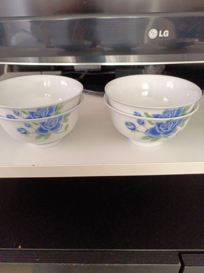 Çiçek desenli beyaz kaseler, renkli ve canlı bir görünüm sunar. Yemek servisi için uygundur. bir adet pembe renk farklı az kullanıldı deforme yok