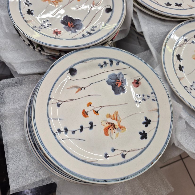 Hafif çiçek desenleriyle süslenmiş beyaz tabaklar, yemek servisi için zarif bir dokunuş sağlar. ️