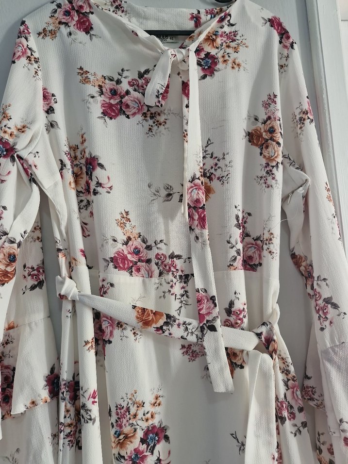 Çiçek Desenli Beyaz Uzun Bohem Elbise Sıfır 42 beden