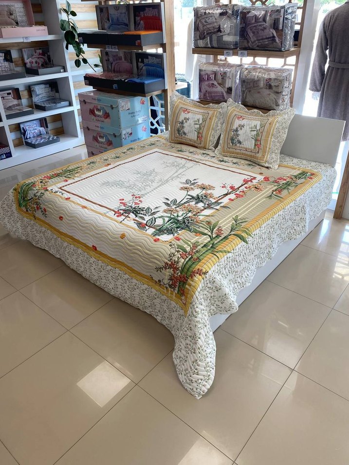 Çiçek desenli, beyaz yatak örtüsü ve uyumlu yastık kılıfları ile yatak odasına ferah bir görünüm kazandırır. Çift Kişilik Battal Boy Yatak Örtüsü Takımı . · 54 tel dokuma sıklığına sahip kumaştan üretilmektedir. · %100 micro kumaş kullanılmaktadır · Hafiftir hava geçirgenliği yüksektir. · Yatak örtüsü : 250 x 260 (1 adet) · Yastık kılıfı : 50 x 70 (2 adet) .Not: Tek Kişilik Yoktur. Güncel fiyat 1400₺ Stokta olan ve güncel fiyat bu şekilde