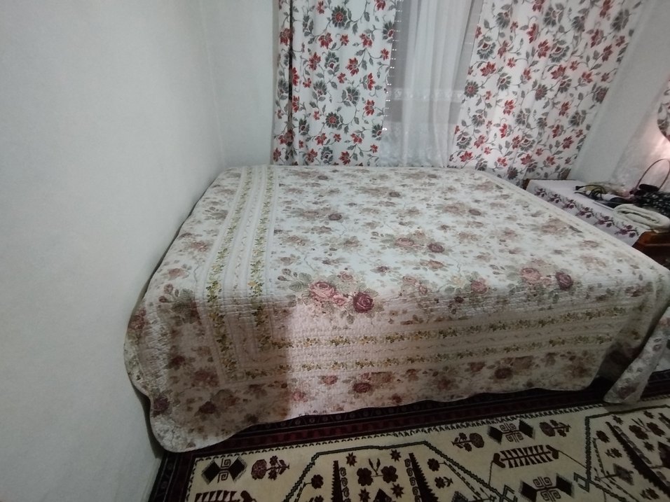 Elessa marka pamuklu yatak örtüsü. 240*250 ölçülerinde. 2 yastığı var. yastığın birinin fermuarı bozuk. arkasında kaldığı için görünmüyür, yaptırılabilir. yatak örtüsü çift taraflı kullanılabilir.