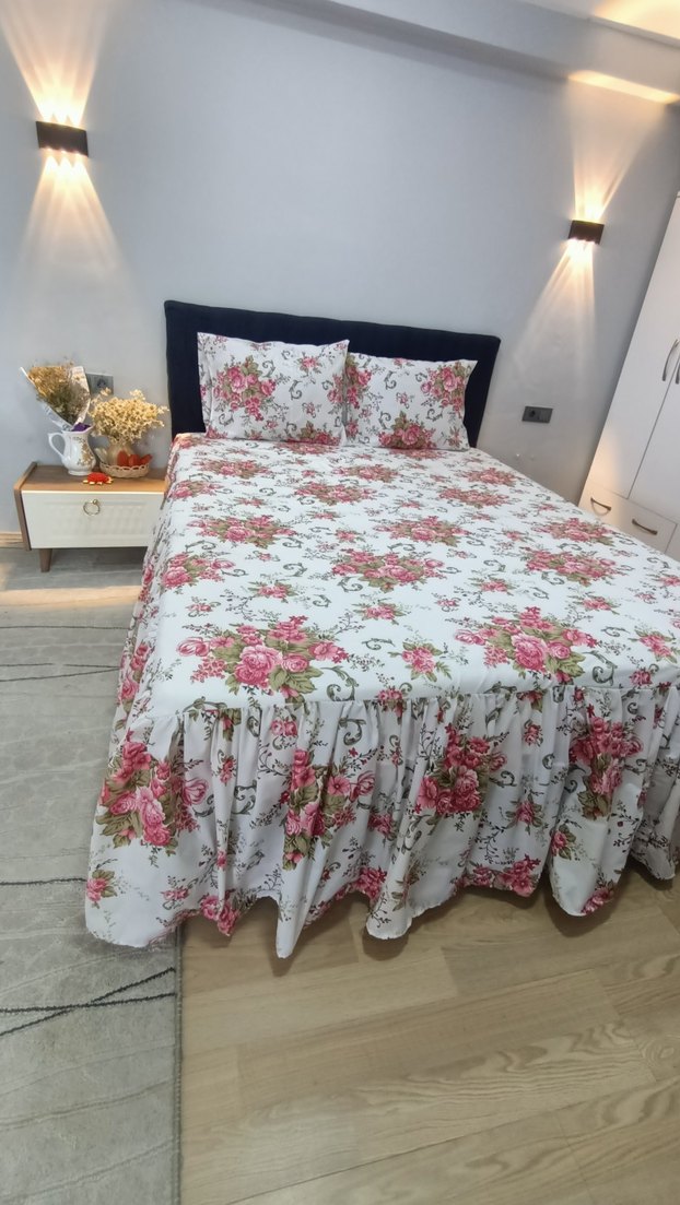 Renkli çiçek desenleri ve fırfırlı kenar detayıyla beyaz yatak örtüsü ve uyumlu yastık kılıfları. @teras_dikimevi İnstagram sayfasından takip edebilirsiniz Fırfırlı lastikli çarşaflar takım...