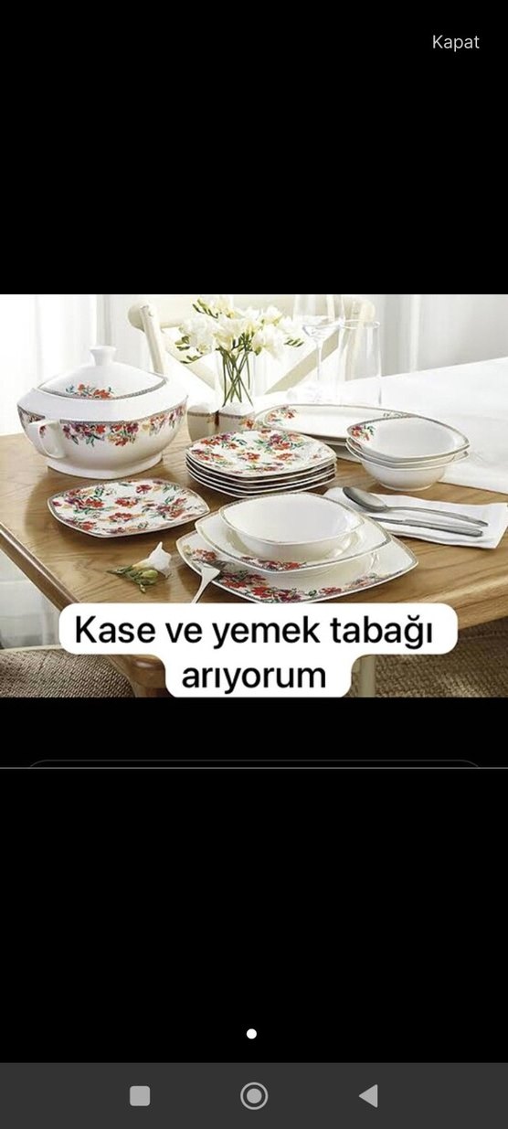 Çiçek desenli beyaz kase ve yemek tabaklarından oluşan yemek takımı.