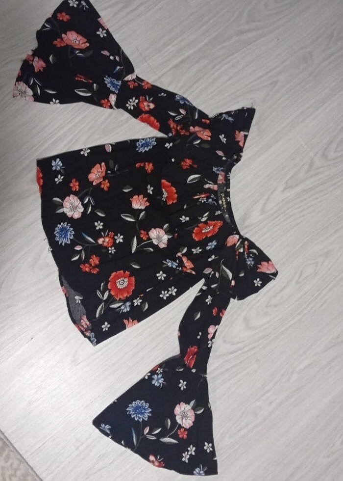 Kayıkçı yaka çiçek desenli S-M beden için uygun İspanyol kol detaylı bluz