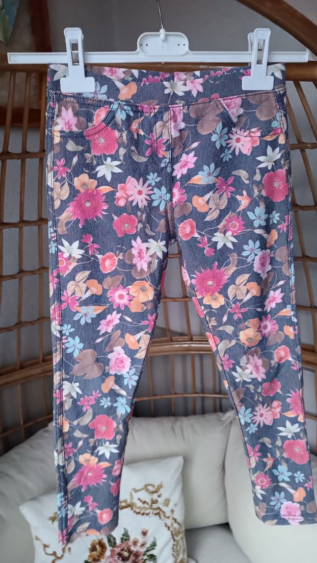 Rahat ve elastik bel bantlı, çok renkli çiçek desenli, gri zeminli bohem tarzda