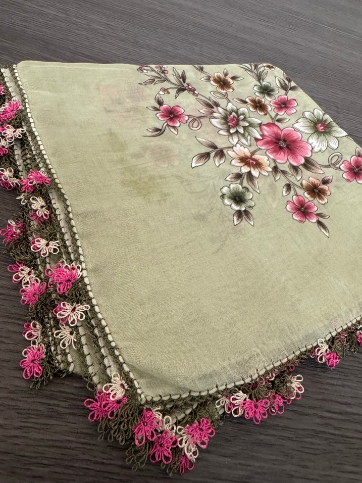 Çiçek Desenli Bohem Dantelli Kadın Fuları