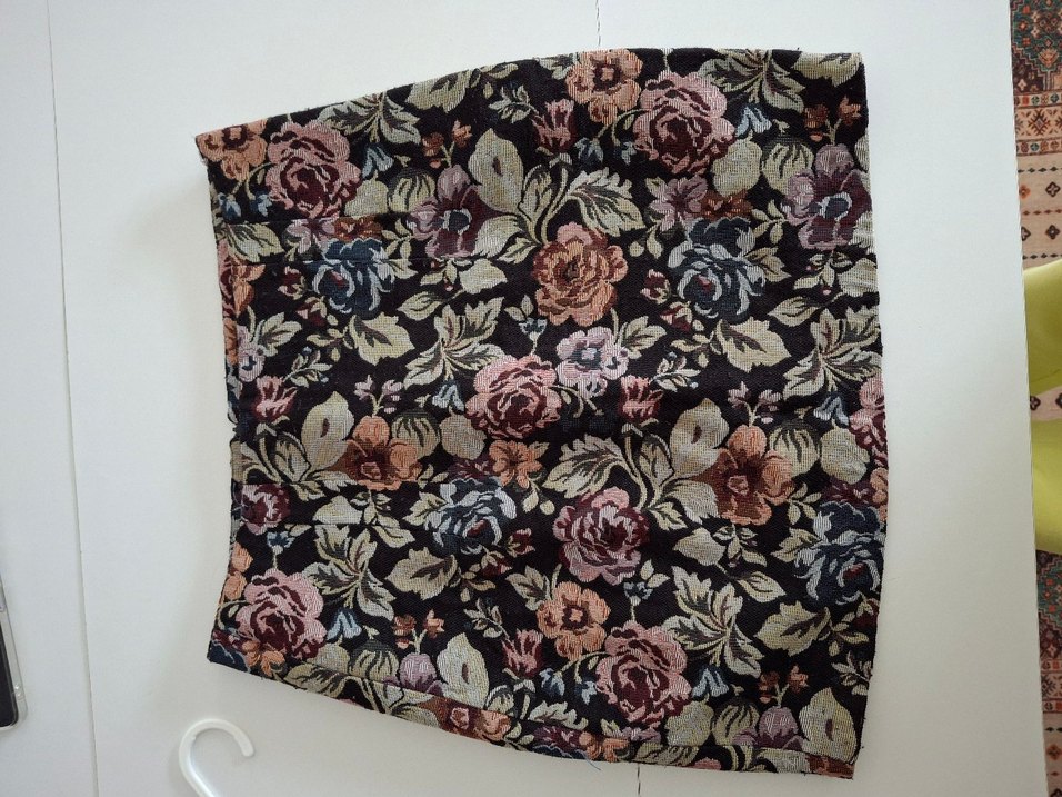 Yumuşak sentetik kumaştan, koyu renkli çiçek desenli, bohem tarzda midi etek.