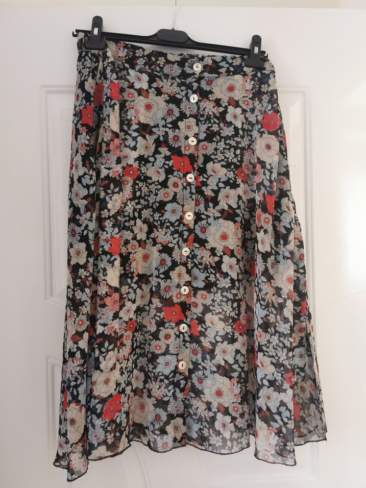Çiçek Desenli Bohem Düğmeli Midi Etek