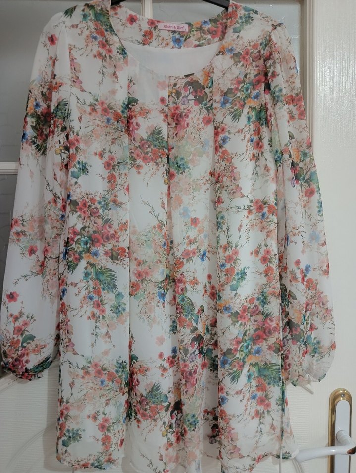 Bu bol kesim hamile bluzu, uzun kollu ve drapeli tasarıma sahip, pastel çiçek desenlidir. Askısız yakalı ve normal midi boydadır, yumuşak sentetik kumaştan yapılmıştır.