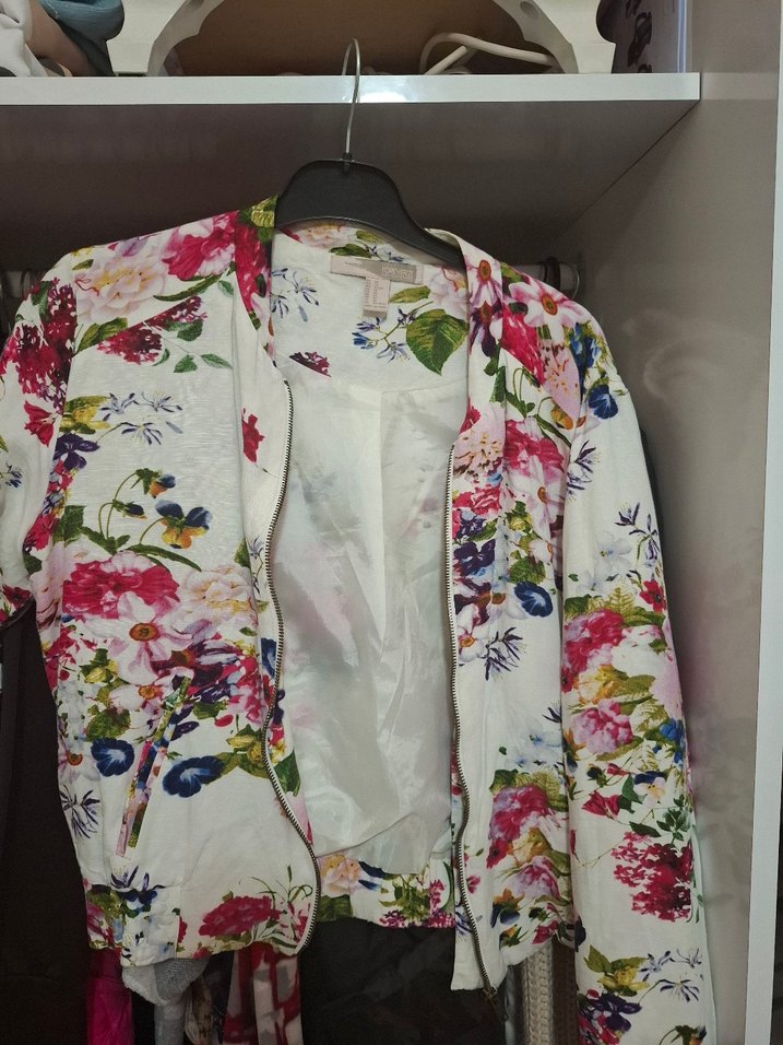 Çiçek desenli, fermuarlı, bohem tarzda, uzun kollu, normal boy kadın ceketi. Notlu yaka ve çok renkli hafif kumaşla günlük kullanıma uygun.