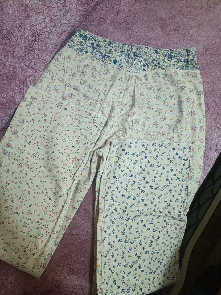Midi boy, bol kesim keten pantolon, çiçek desenleri ve düğmeli detaylı. Bohem tarz için uygun. 36 bel 105 boy