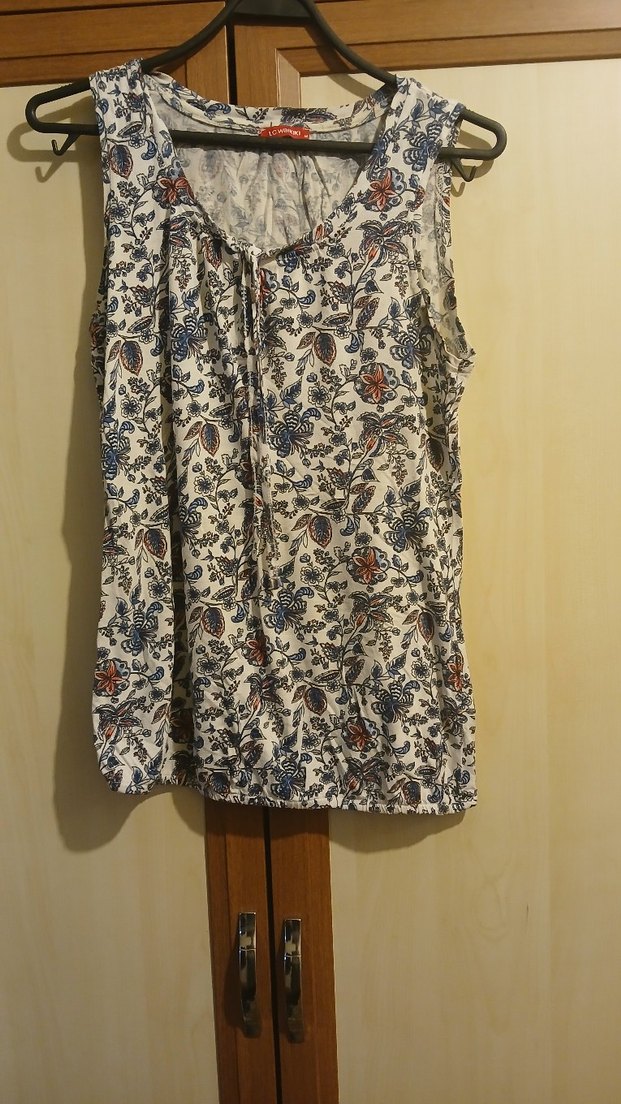 Pamuk kumaştan yapılmış, kolsuz, salaş kesim ve drapeli tasarıma sahip, çiçek desenli kadın bluzu. Günlük kullanıma uygundur.