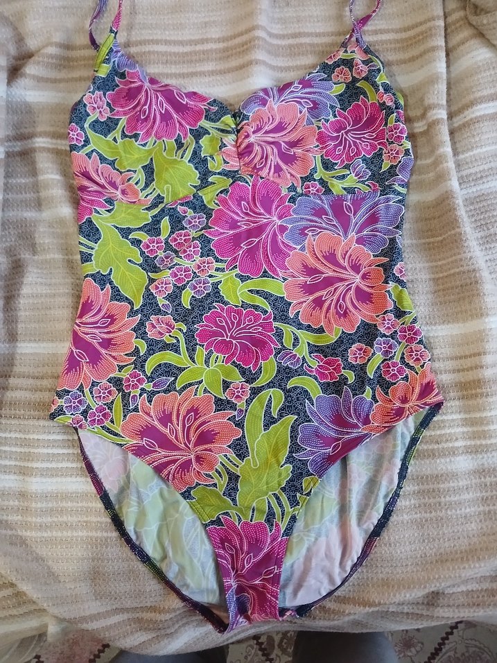 3 kere kullanıldı tamamen temiz Çiçek desenli, dantelli, bohem tarzda, kolsuz ve vücuda oturan kadın mayo. Midi boy ve plaj için uygun.