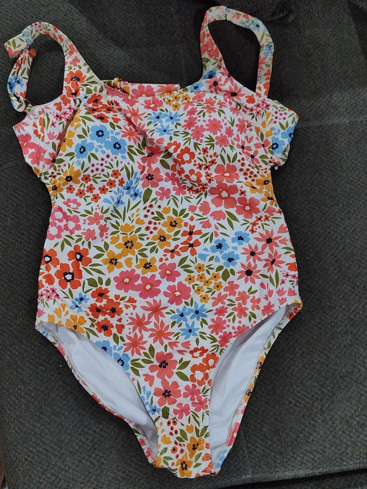 Renkli çiçek desenli, askılı ve fırfırlı detaylı, vücuda oturan kadın mayo. Midi boy, plaj için bohem tarzda uygun.