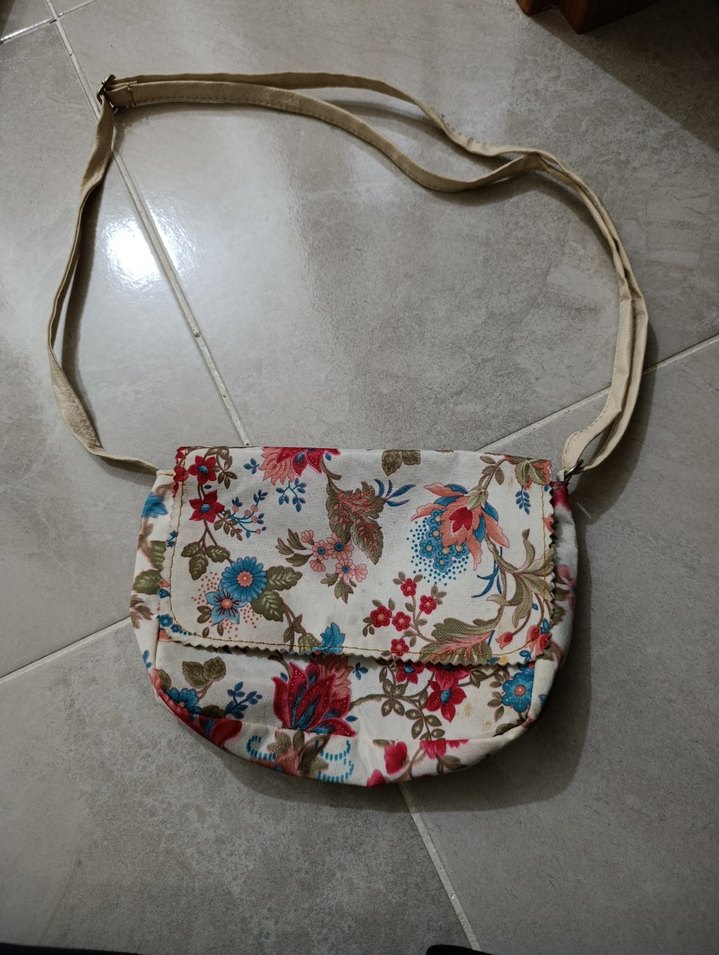 Çiçek desenli, açık renk sentetik kumaştan yapılmış, tokalı kapaklı kadın omuz çantası. Uzun ayarlanabilir askısı günlük kullanıma uygundur. Küçük boy çiçekli kadın çantası, sıfır üründür ve hiç kullanılnamıştır, basit ve kullanışlı bir çantadır. herhangi bir defosu bulunmamaktadır