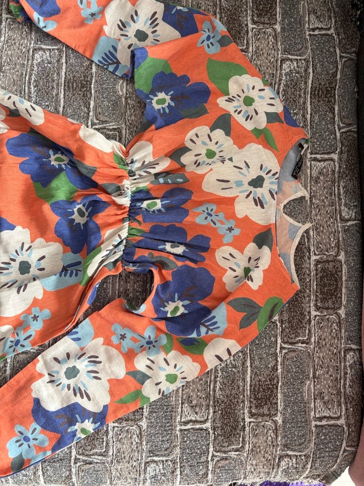 Renkli çiçek desenli, uzun kollu ve tekne yaka, bol kesim bohem tulum. Fırfır detaylarıyla günlük kullanıma uygun.
