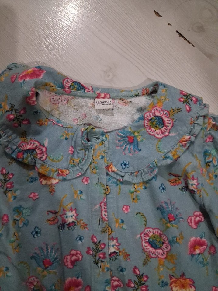 Pastel renkli, uzun kollu, düğmeli ve bol kesim kız bluzu. Çiçek desenli ve yakalı, bohem tarzda bir modeldir.