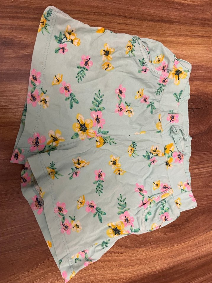 Yumuşak sentetik kumaştan, pastel çiçek desenli, pileli ve bol kesim kız şortu. Bohem tarz için uygun.