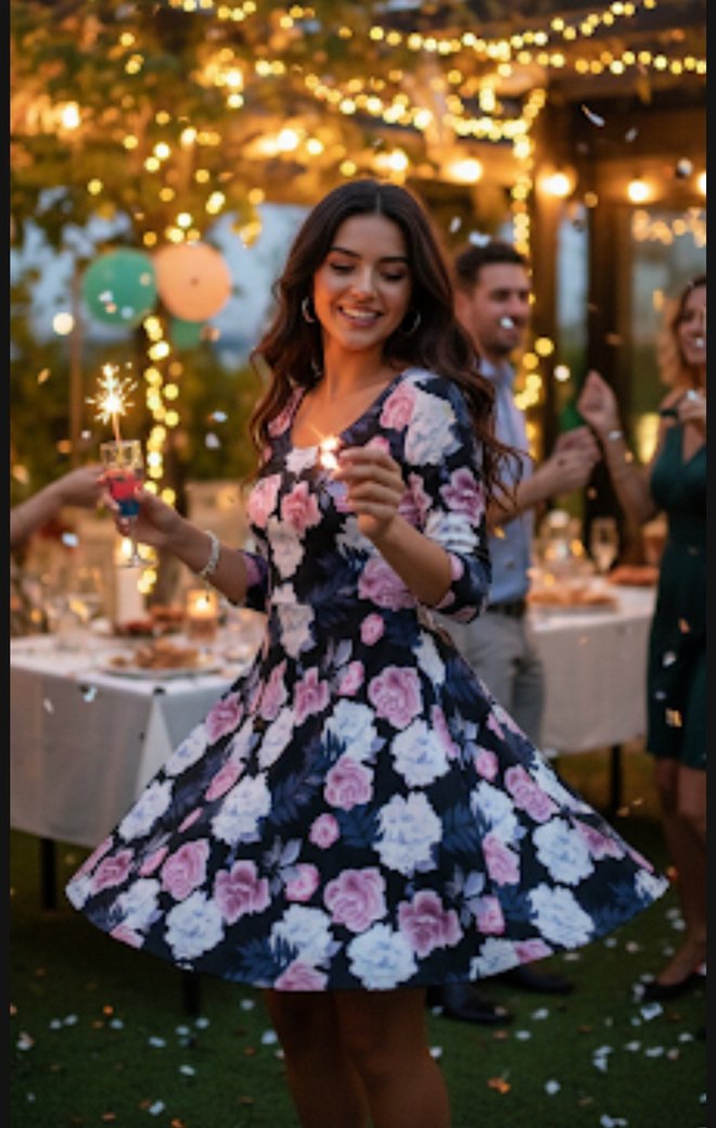 Yumuşak pamuktan, uzun kollu, V yakalı, dantel detaylı, bol kesim, açık pembe çiçek desenli midi elbise.