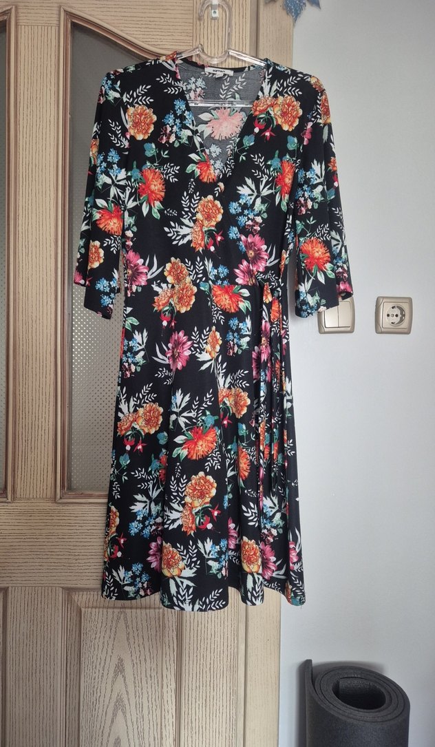 Çiçek desenli, kruvaze yakalı, japon kolları olan, Yumuşak sentetik kumaştan üretilmiştir. temiz kullanılmış.