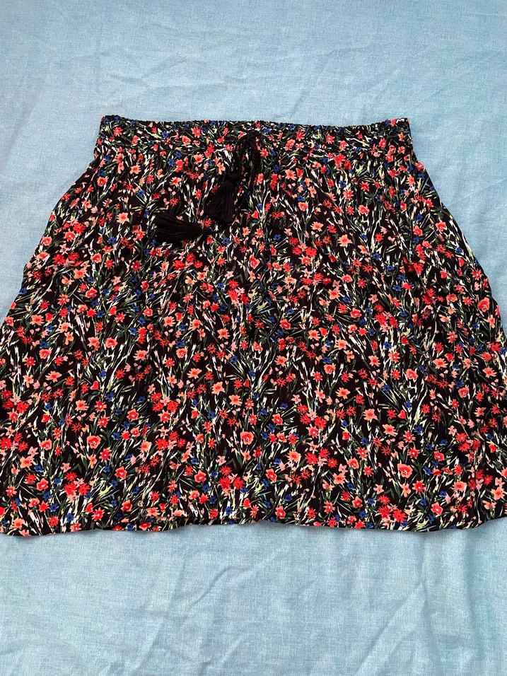 Sentetik kumaştan, düğmeli, koyu renkli çiçek desenli, bol kesim bohem mini etek, açık hava kullanımı için uygundur.