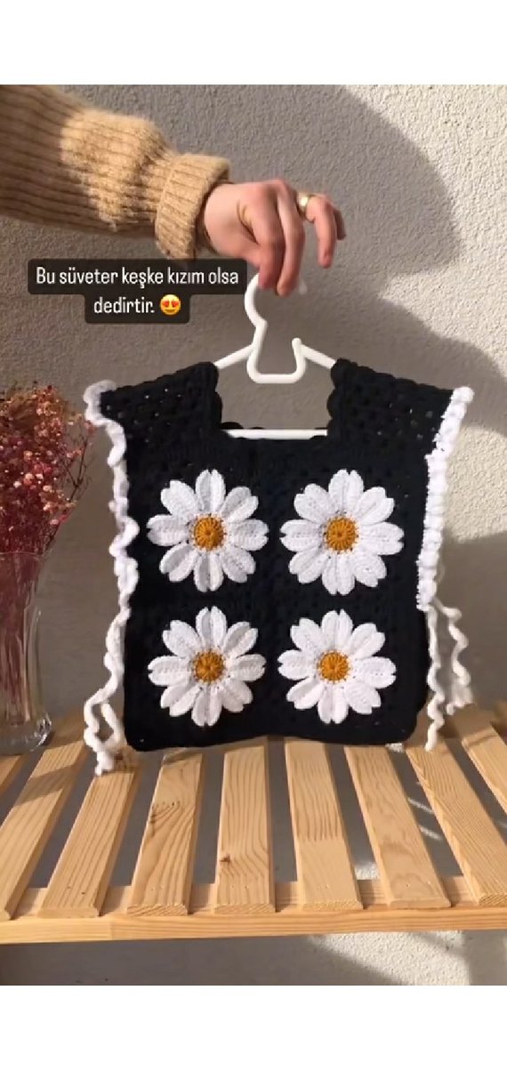 Çiçek desenli, straplez yaka ve salaş kesim bohem tarzda örgü kız süveter. 0-6 aylık için uygundur. istediğiniz yaşa göre uyarlayabilirim Yaş farkı fiyata yansır