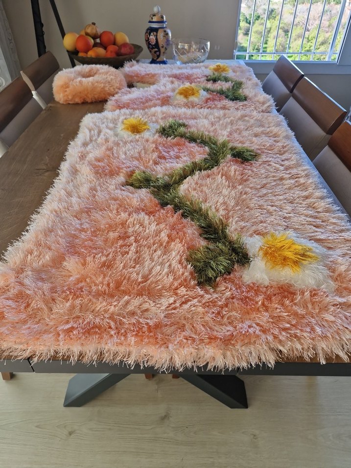 Yumuşak ve kabarık dokuda, pastel tonlarda çiçek desenli bohem tarzı paspas. Mekâna sıcak ve renkli bir hava katıyor. Yeni çeyizlik yapıldı kullanılmadı