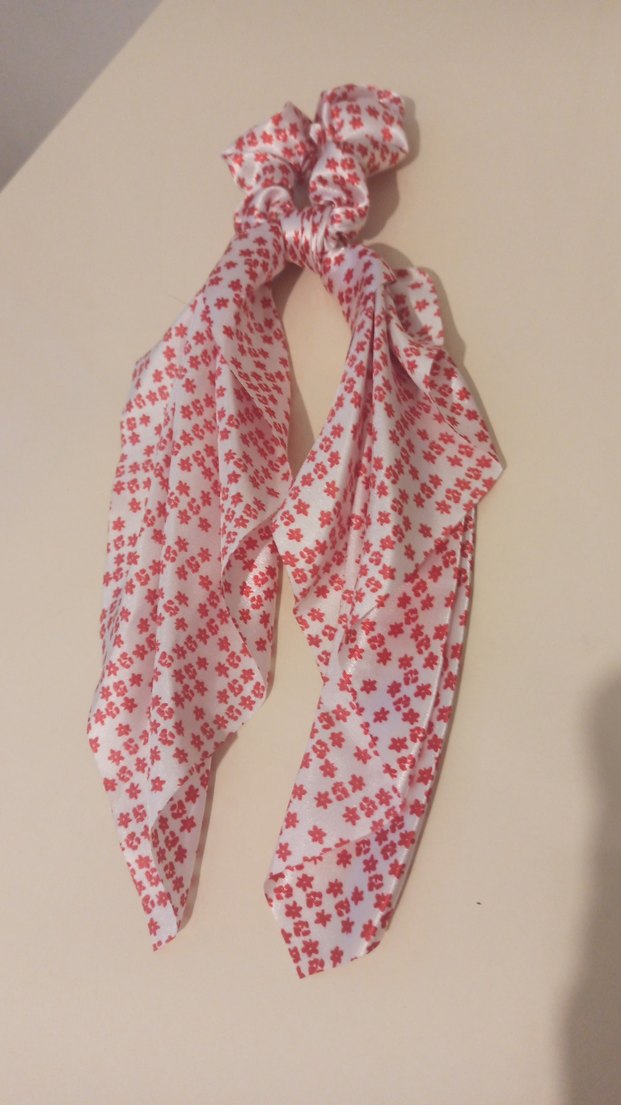 Yumuşak sentetik kumaştan yapılmış, çiçek desenli ve kurdele detaylı bohem tarzda saç tokası.