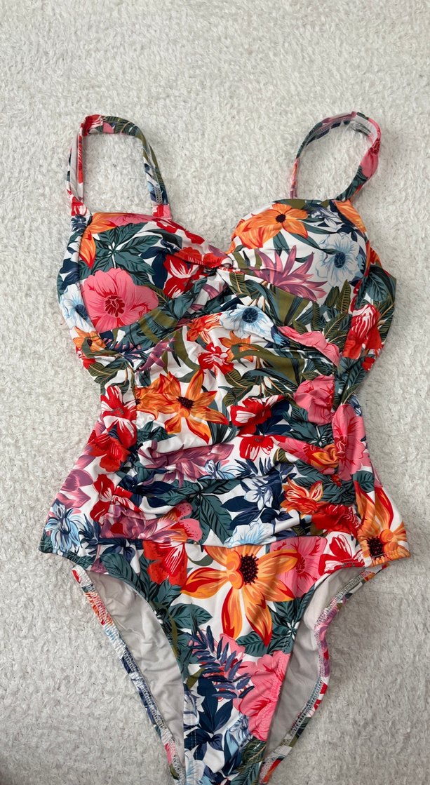 Renkli çiçek desenleri ve fırfır detaylarıyla bohem tarzda, askılı ve midi boyda, plaj için uygun vücuda oturan mayo. 30 beden Penti mayo az giydim yemiz ve defosuz