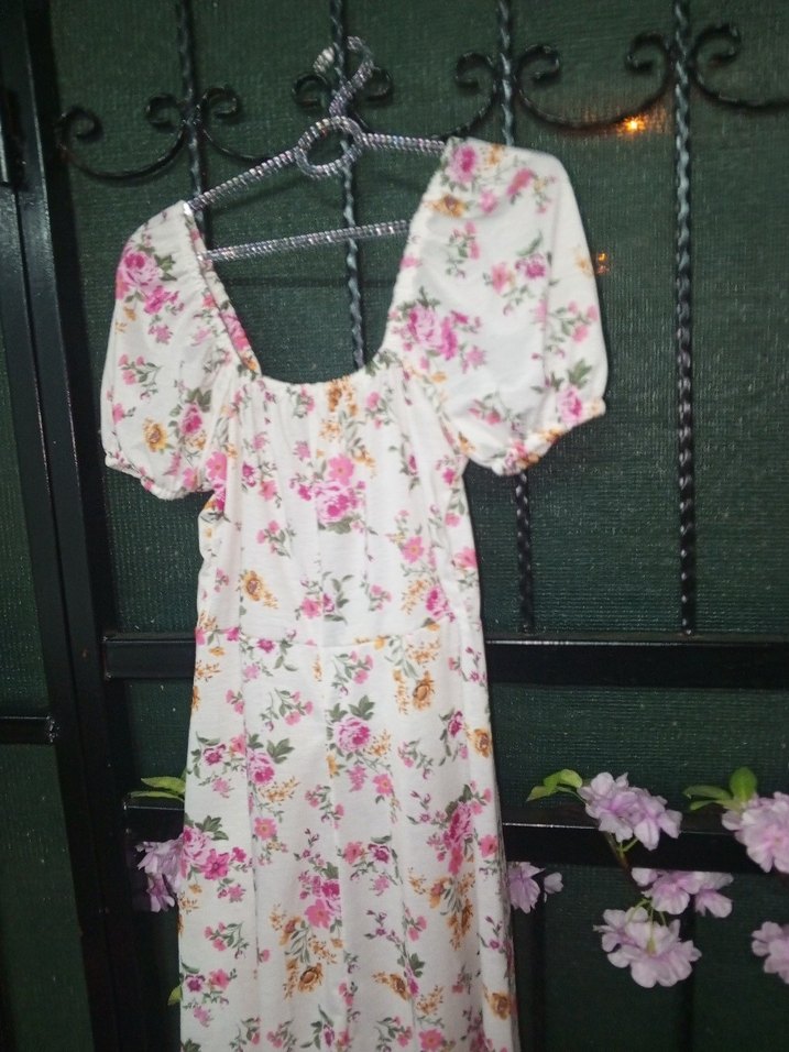 Pastel çiçek desenli, bol kesim uzun elbise. Balon kollu, drapeli ve askılı yakalı, günlük kullanıma uygun. hiç giyilmedi sadece etiketi söküldü alındı alındığı günden beri hiç giyilmedi