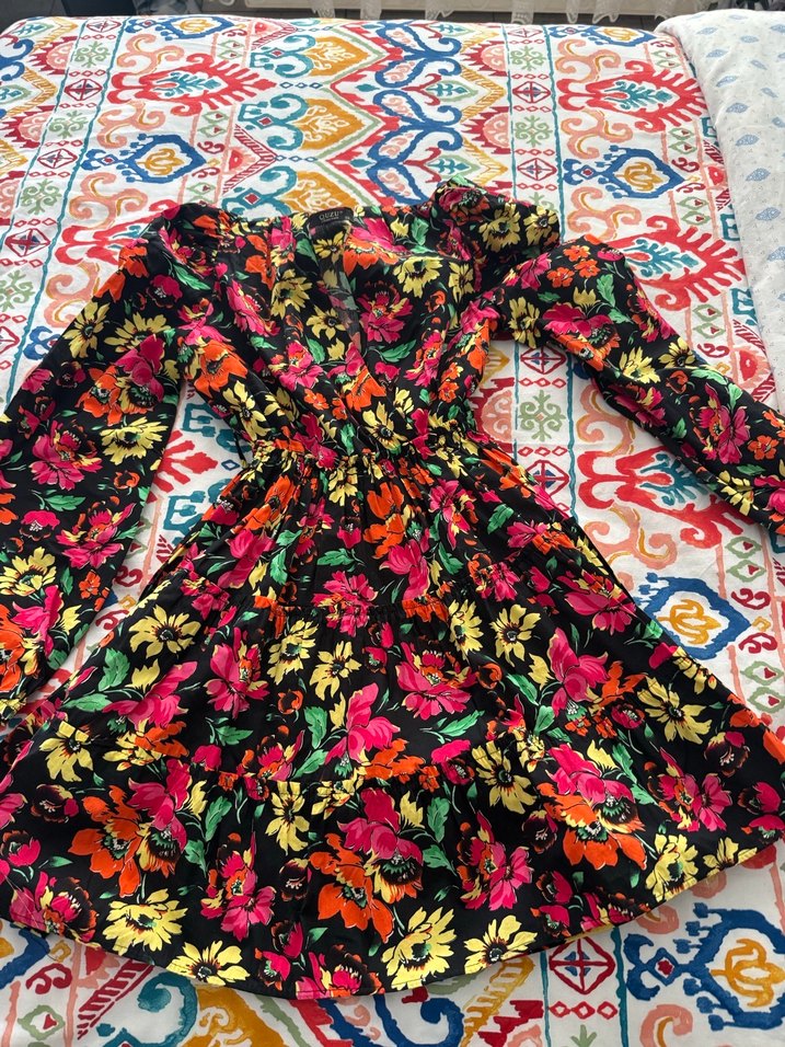 20 ye yakın elbise gömlek karışık psrçalar Çogu sıfır L xl uyumlu Renkli çiçek desenli bohem elbise, V yaka ve düğmeli ön detaylıdır. Uzun kollu ve bol kesimdir, günlük kullanıma uygundur.