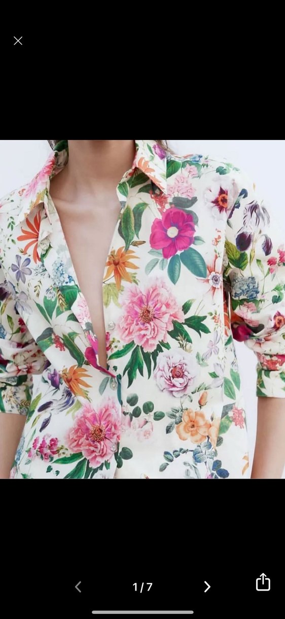 Orijinali Zara ÇİÇEK DESENLİ POPLİN GÖMLEK Çiçek desenli, V yakalı ve düğmeli bohem tarzı kadın gömleği. Uzun kollu, normal boy ve yumuşak sentetik kumaştan, günlük kullanıma uygun.