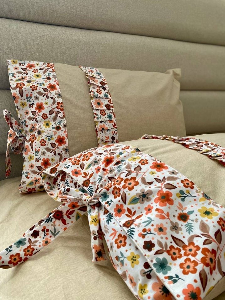 Çiçek desenli, açık renkli ve bağcıklı detaylara sahip bohem tarzda yastık kılıfı iki adet