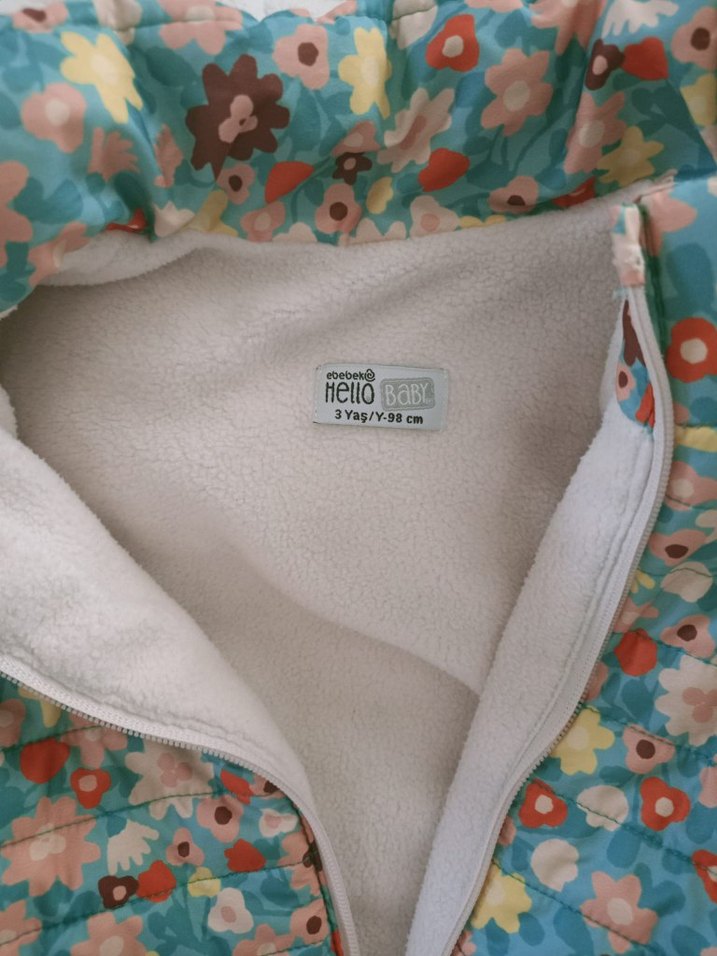 Pastel çok renkli çiçek desenli, yumuşak ve sıcak iç yüzeye sahip çocuk battaniyesi. 3 yaş, 98 cm beden.