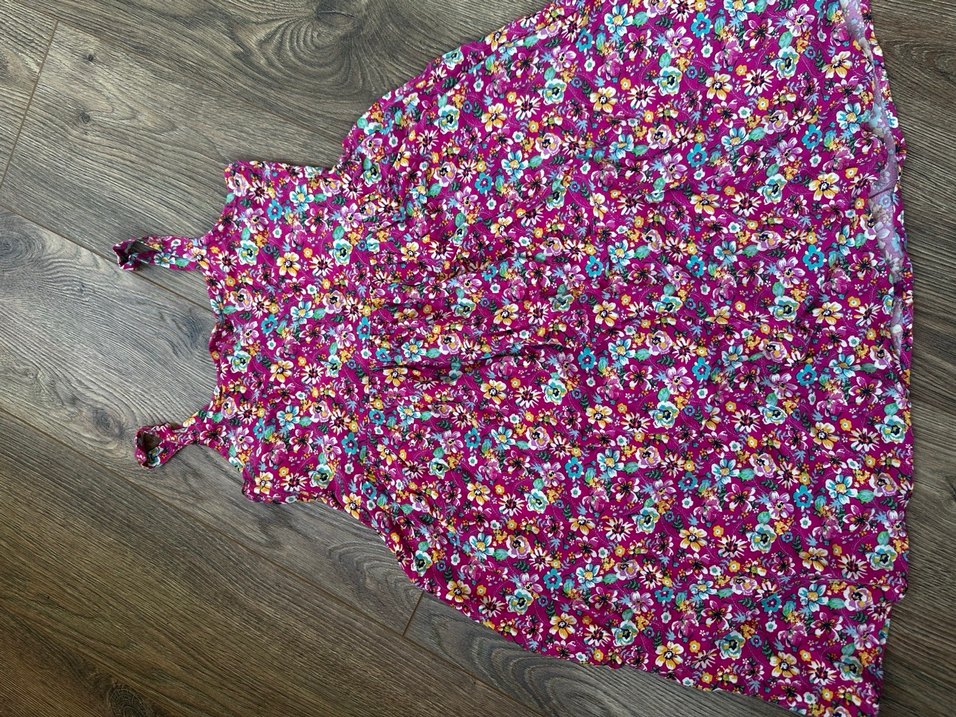 Renkli çiçek desenli, ince askılı, çocuk elbisesi Sentetik kumaştan, bohem tarzda ve dış mekan kullanımı için uygundur.