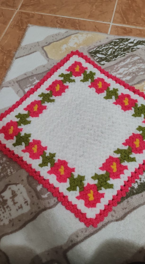 Pembe, yeşil ve beyaz renklerde çiçek desenli çok renkli banyo süngeri, banyonuza dekoratif bir dokunuş katıyor.