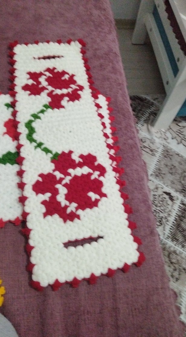 Kırmızı çiçek desenli, beyaz zeminli çok renkli banyo süngeri. Dikdörtgen şekilli ve tutma yerleri bulunur.