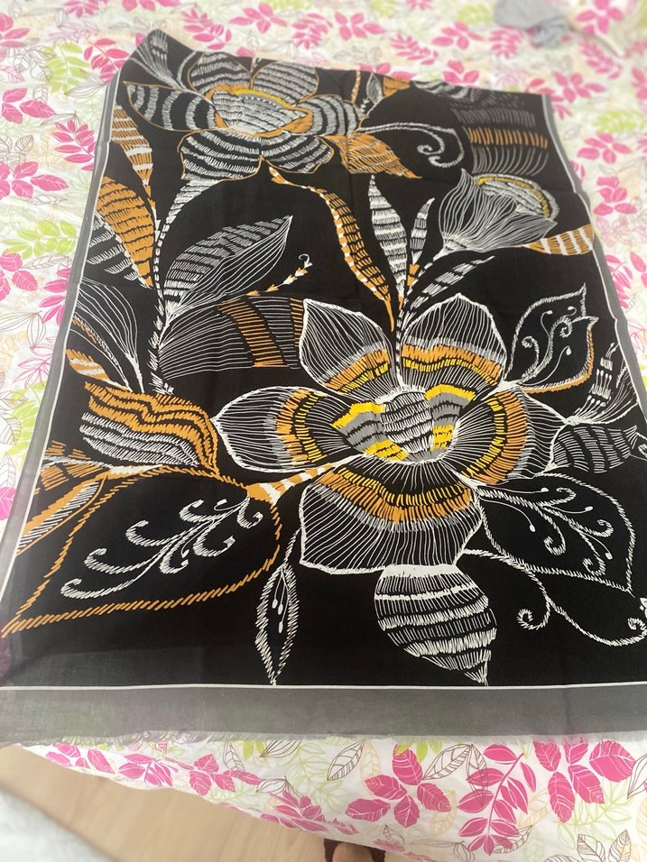 Kadın şalı, çok renkli çiçek desenleriyle koyu zemin üzerinde baskılıdır. Bohem tarzı yansıtan yumuşak tekstil malzemeden yapılmıştır. Adet fiyatı geçerlidir