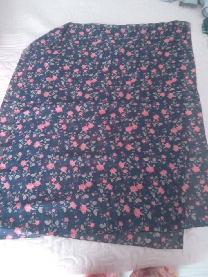 Çiçek desenli, çok renkli ve dökümlü tasarıma sahip koyu renkli şal, yumuşak sentetik kumaştan üretilmiştir. Bohem ve retro tarzlara uygundur.