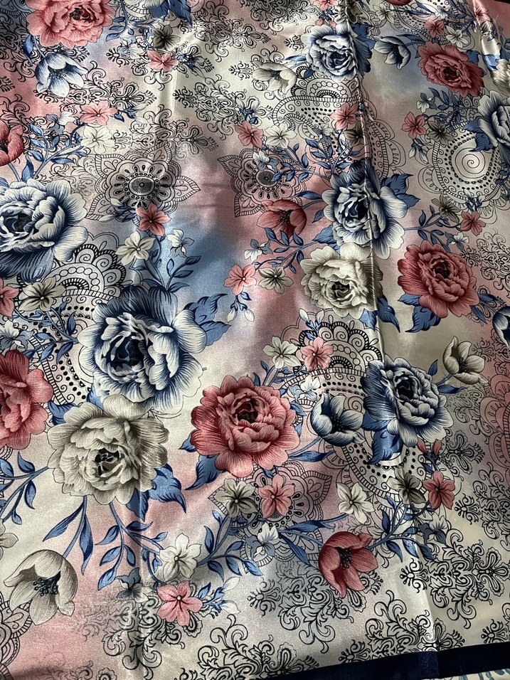Çok renkli çiçek desenli, gri zeminli, yumuşak sentetik kumaştan yapılmış, bohem tarzda drapeli kadın şal.