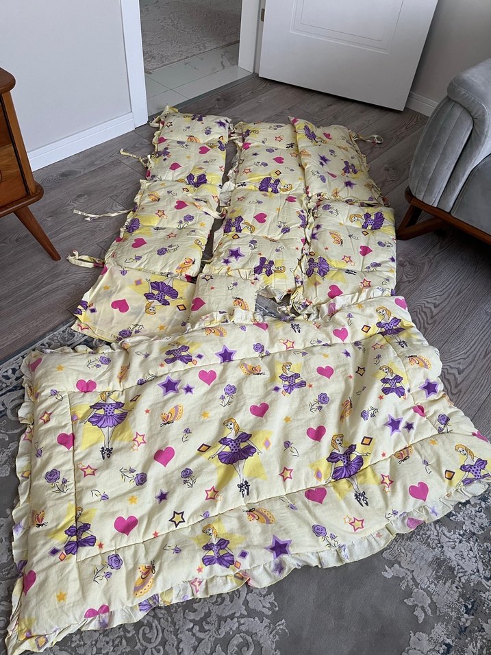 4 köşe mevcut Küçük yastık ve çarşaf 1 adet yorgan