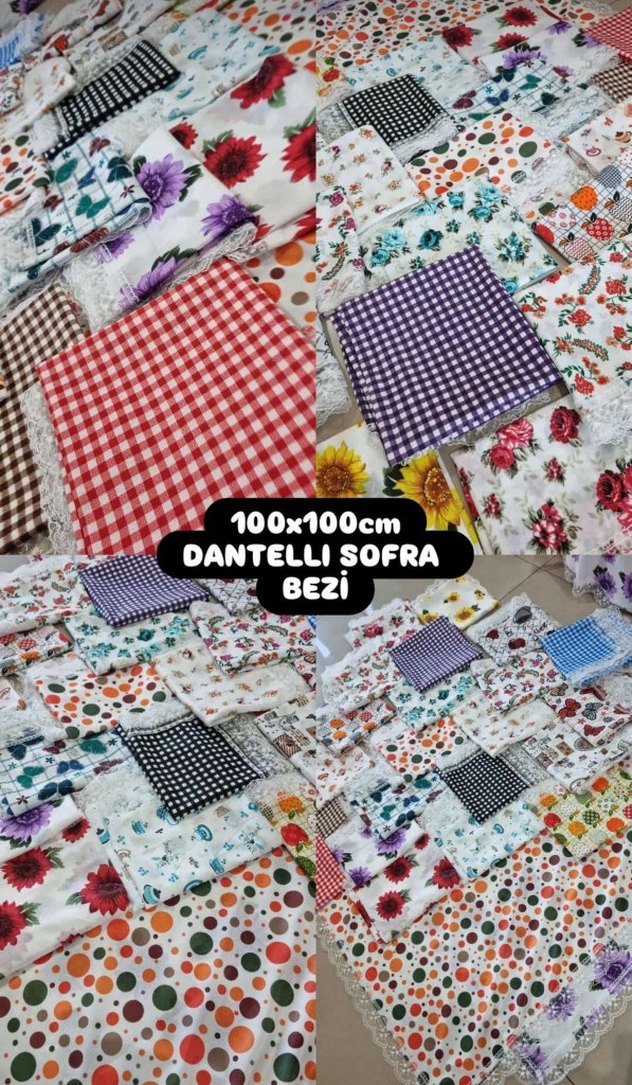 100x100 cm ölçülerinde, koyu ve canlı renklerde çiçek desenli, dantelli ve klasik tarzda sofra bezi. fiyat sorunuz