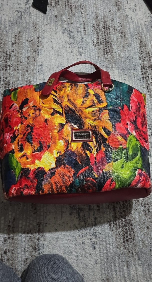 Çiçek Desenli Çok Renkli Deri Kadın Çantası
