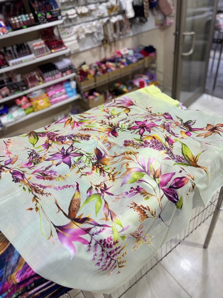 Bu ipeksi kadın fular, canlı çok renkli çiçek desenine sahip. Hafif ve yumuşak dokusuyla bohem tarzı ve retro-hippi havası katıyor. Cenk oyalık desenli yazma