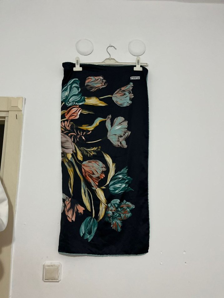 Kadınlar için ipeksi dokulu, çok renkli çiçek desenleriyle drapeli tasarıma sahip fular, avangart tarzı sevenler için uygun.