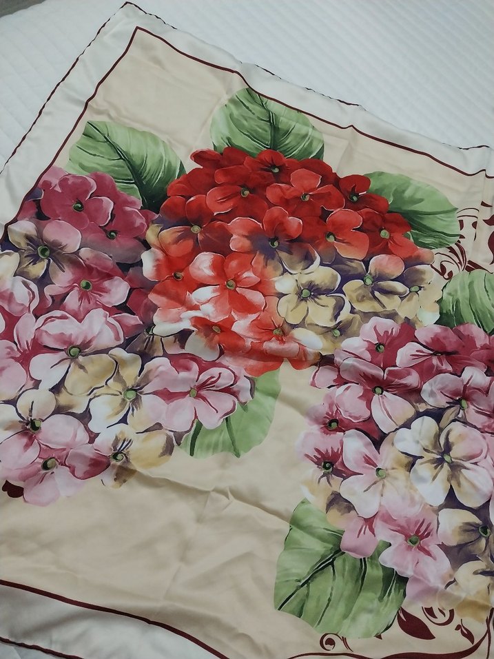 Kadınlar için ipek dokulu, çok renkli ve çiçek desenli vintage fular. Hafif ve dökümlü yapısıyla bohem ve retro tarzlara uyum sağlar.