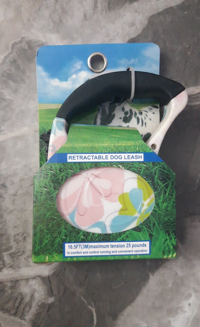 Çok renkli, 16.5 fit (3 metre) uzunluğa kadar uzayan ve maksimum 25 pound dayanabilen otomatik köpek gezdirme kayışı. Rahat tutma sapı ile kontrol kolaylığı sağlar.