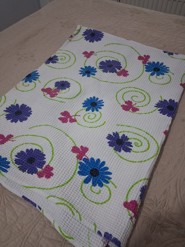 Çiçek Desenli Çok Renkli Yatak Örtüsü. en156. boy220