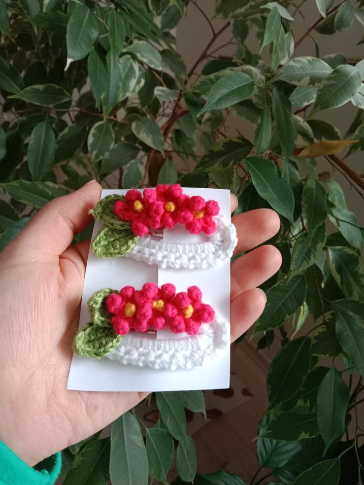 İki adet pembe çiçekli, beyaz dantel detaylı renkli çocuk toka seti. Bohem tarzı için uygun. çift fiyatıdir