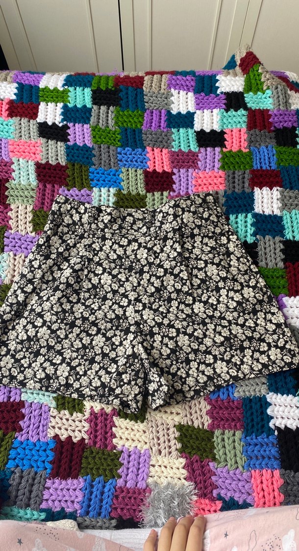 Çiçek desenli, dantel detaylı ve yumuşak triko kumaştan yapılmış bol kesim mini şort. Rahat ve bohem bir tarz için uygundur.